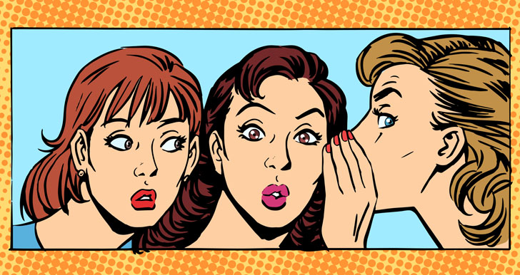 Il pettegolezzo riguarda la diffusione di informazioni riguardo una persona in quel momento assente, significa condividere qualcosa di riservato, o semplicemente il parlare alle spalle di qualcuno.
